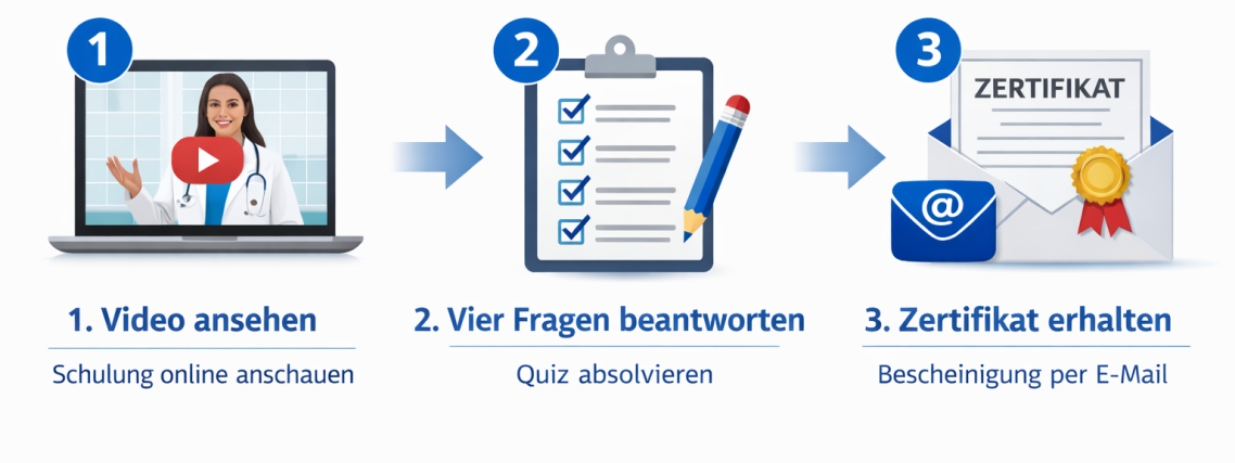 Buchen, sofort Zugang erhalten, Online-Schulung jederzeit absolvieren – Ihr Zertifikat kommt garantiert zum gewählten Termin, ohne Wartezeit.